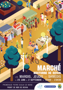 Du 29 juin au 2 septembre, retrouvez notre Marché Nocturne d’artisans et de créateurs les mardis, jeudis et samedis de 18h à 23h30, promenade Pierre Dugua de Mons sur le front de mer de Royan ! Venez flâner au Marché Nocturne après une belle journée ensoleillée !